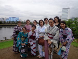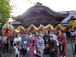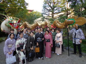 2014年は夏に浜離宮へお出かけしました。浴衣での参加も多く夏らしいイベントとなりました。 10月には浅草、浅草寺での金竜の舞に皆で出かけました。夏が終わり、袷の着物で秋の雰囲気が出ていますね。たくさんの卒業生と生徒さんで集まる事ができました。